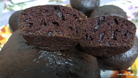Смешать по стакану муки и сахара. Добавить чайную ложку соды, щепотку соли, 50 грамм какао - это три столовые ложки. Перемешать.